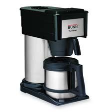 Bunn-O-Matic Corporation Products - Home Brewer, 10-Cup, 7-1/10"x13-4/5"x14-1/3", BK/STST - Sold as 1 EA - 10-cup Thermofresh Home Brewer offers a stainless steel vacuum-insulated carafe that keeps coffee hot without overheating. Brew 10 cups of perfect coffee in 3 minutes. Internal thermostat keeps water at ideal brewing temperature. Patented sprayhead design improves coffee flavor extraction. Unbreakable double-wall carafe is dishwasher-safe and includes a convenient close-and-brew lid. Home b Review